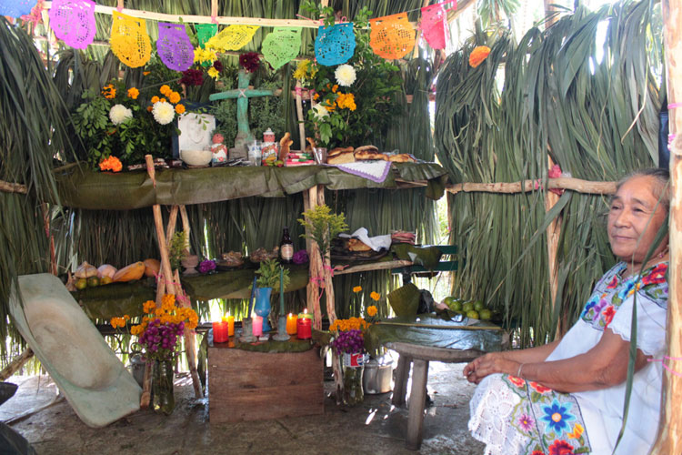 Este altar se destaca principalmente porque, a diferencia de los que se pueden apreciar en el centro de México, no se adorna con cempasúchil, la inconfundible flor de muertos. Tiene como principal influencia la cultura maya, por lo que los altares se diseñan en función de su cosmogonía prehispánica.