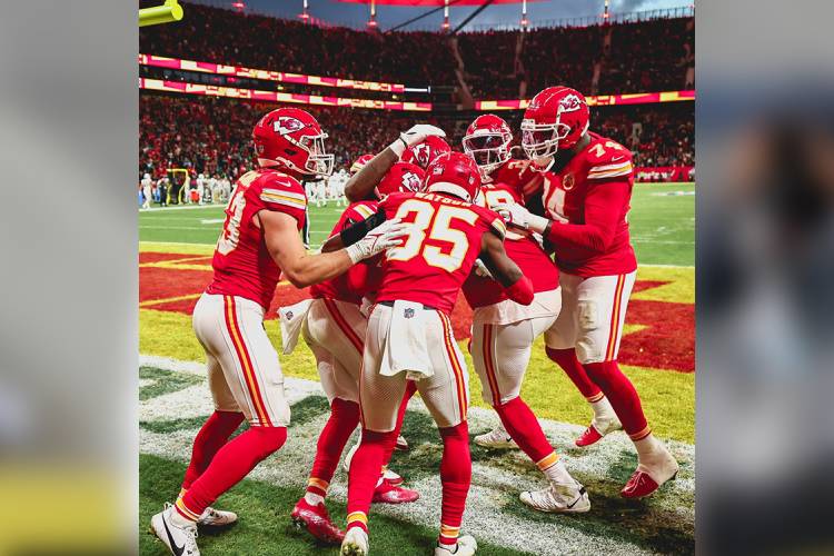 Patrick Mahomes, quarterback de los campeones Kansas City Chiefs, conectó este domingo dos envíos de anotación en el triunfo de su equipo 21-14 sobre los Miami Dolphins en partido de la Semana 9 de la Temporada 2023 de la NFL disputado en el Deutsche Bank Park de Frankfurt, Alemania.