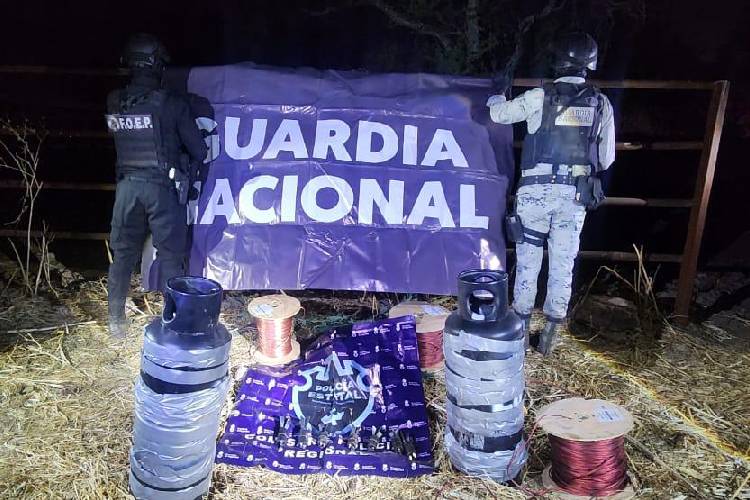 La Fiscalía General de la República (FGR) dio a conocer que la Fuerza Interinstitucional Regional (FIR) aseguró un presunto narcotaller improvisado donde se localizaron precursores para la elaboración de explosivos en tierra (minas) y siete dispositivos para uso de aire y tierra.