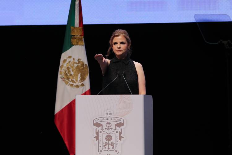 En su primer discurso, mencionó que llegar a ser la primera rectora de la casa de estudios es un triunfo de la lucha de las mujeres en la historia de la UdeG, de Jalisco, de México y del mundo para posicionarse y alcanzar estos espacios.