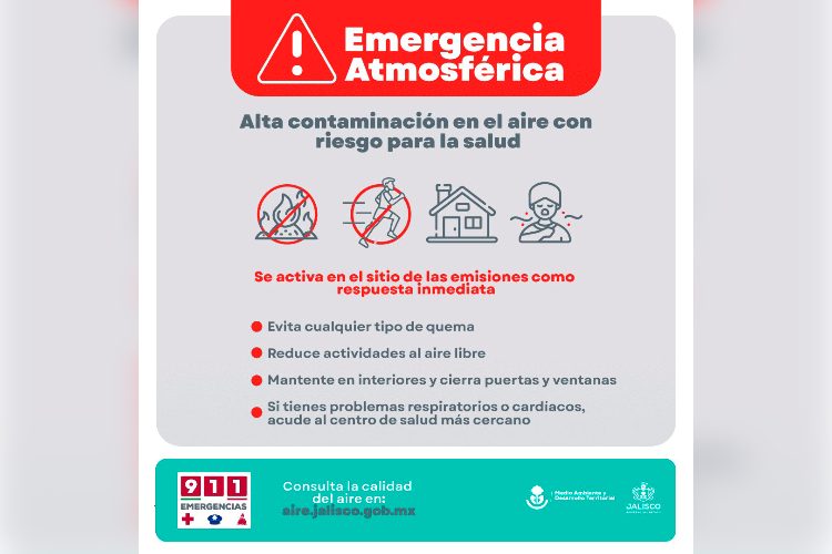 Por otro lado, la Semadet desactivó el sábado la emergencia atmosférica implementada desde las 9 horas del 23 de abril para Cabo Corrientes, San Sebastián del Oeste, Tomatlán, Mascota y Talpa. La medida pasó a ser una alerta atmosférica que ayer, hasta el cierre de esta edición, seguía activa.